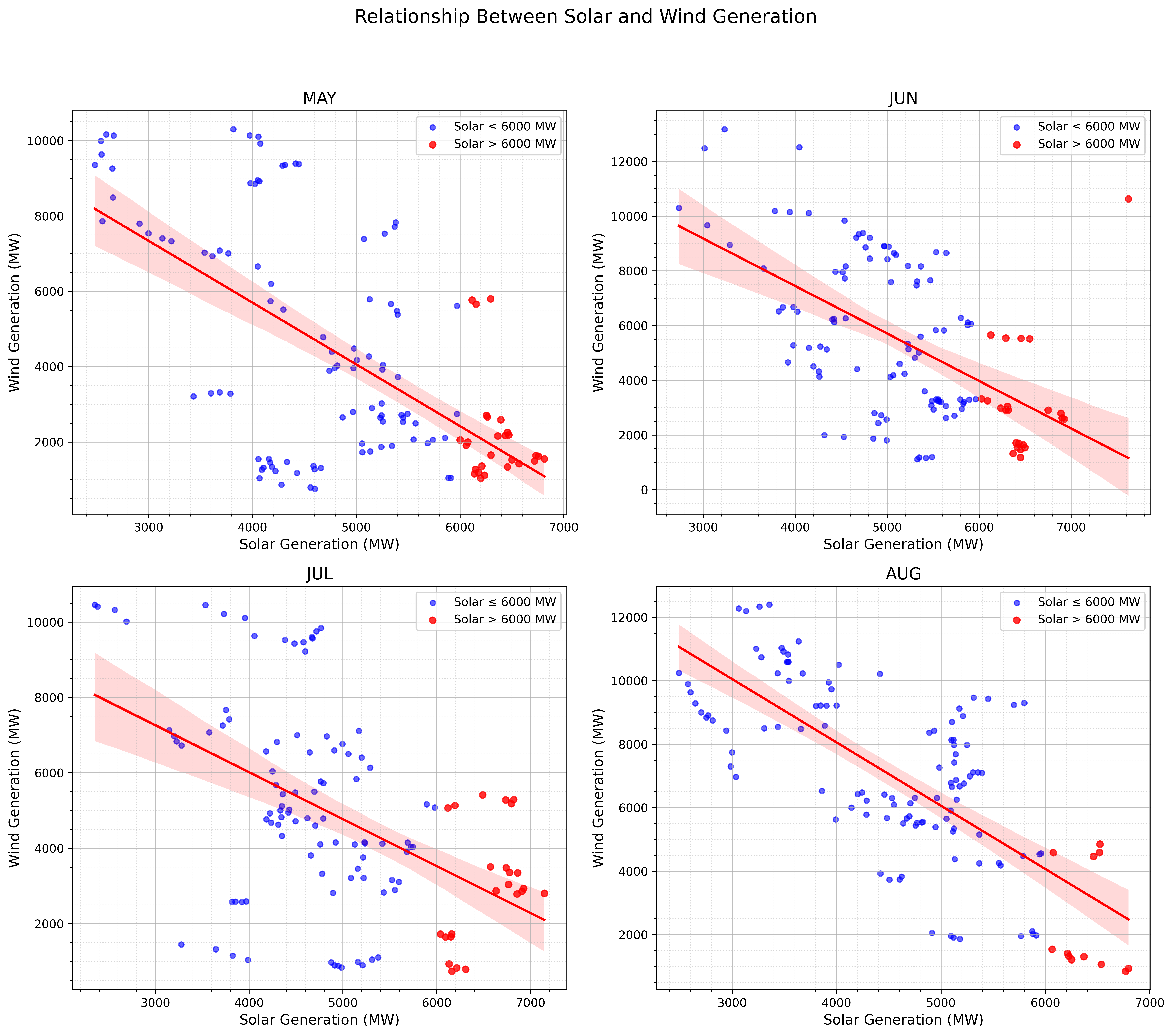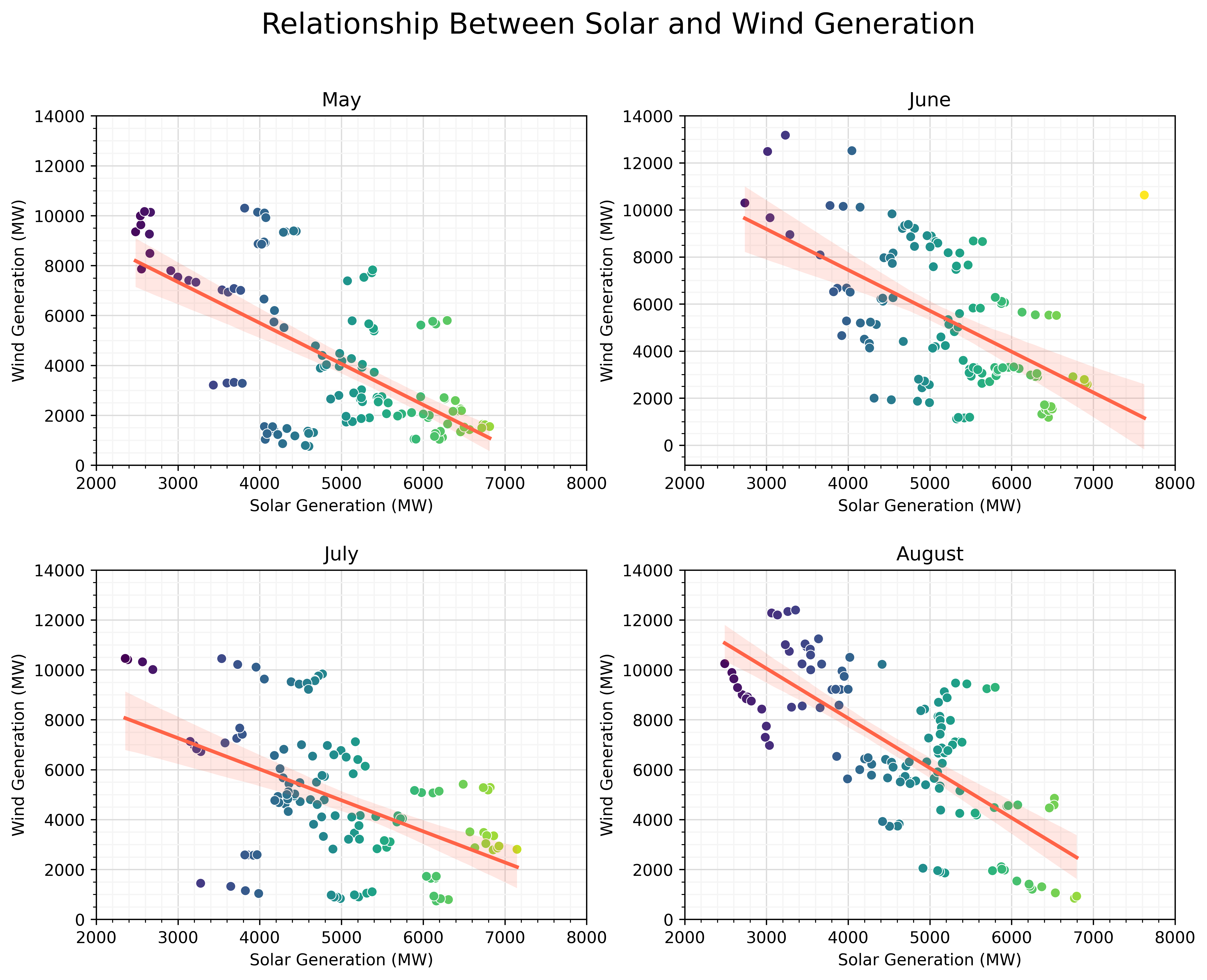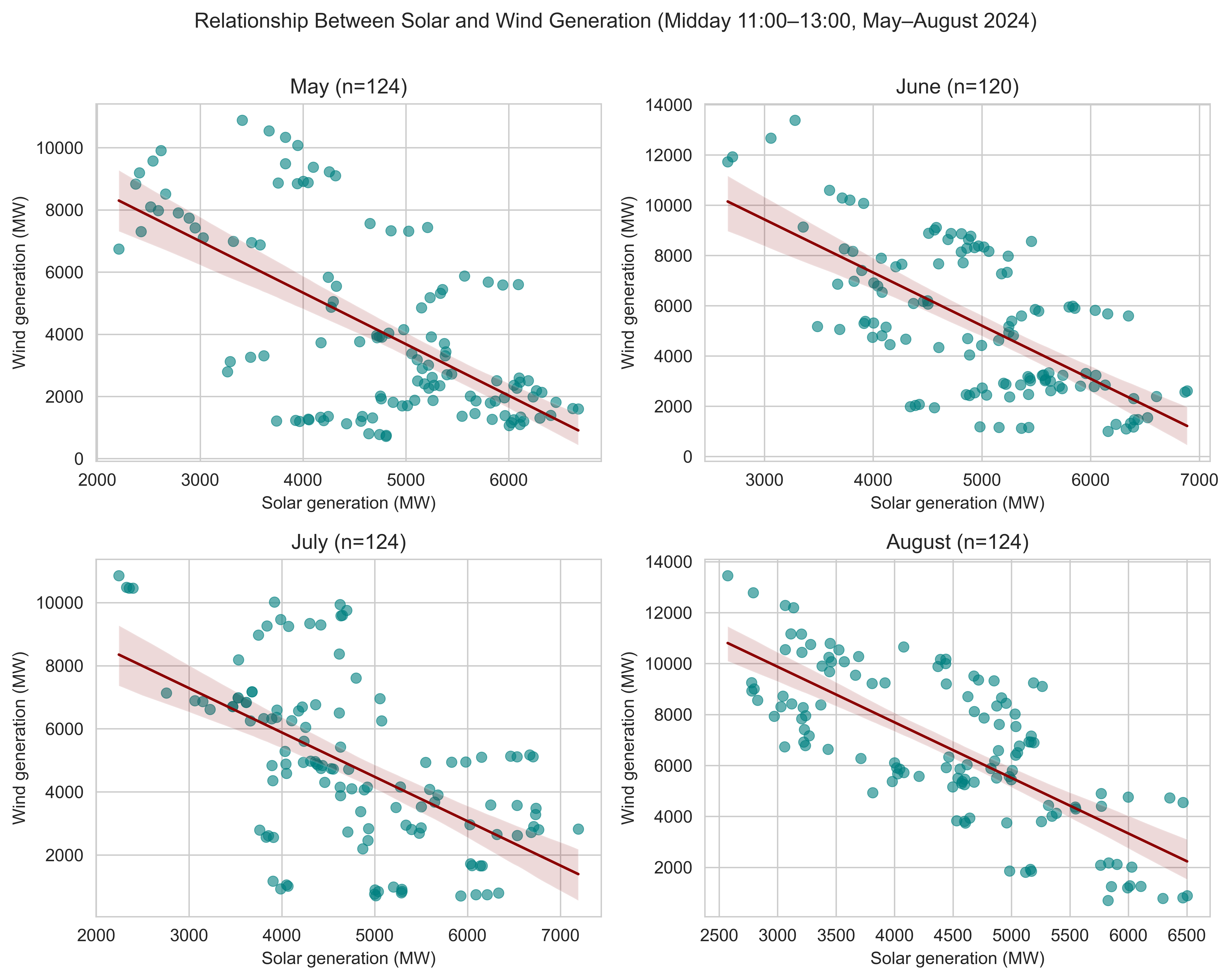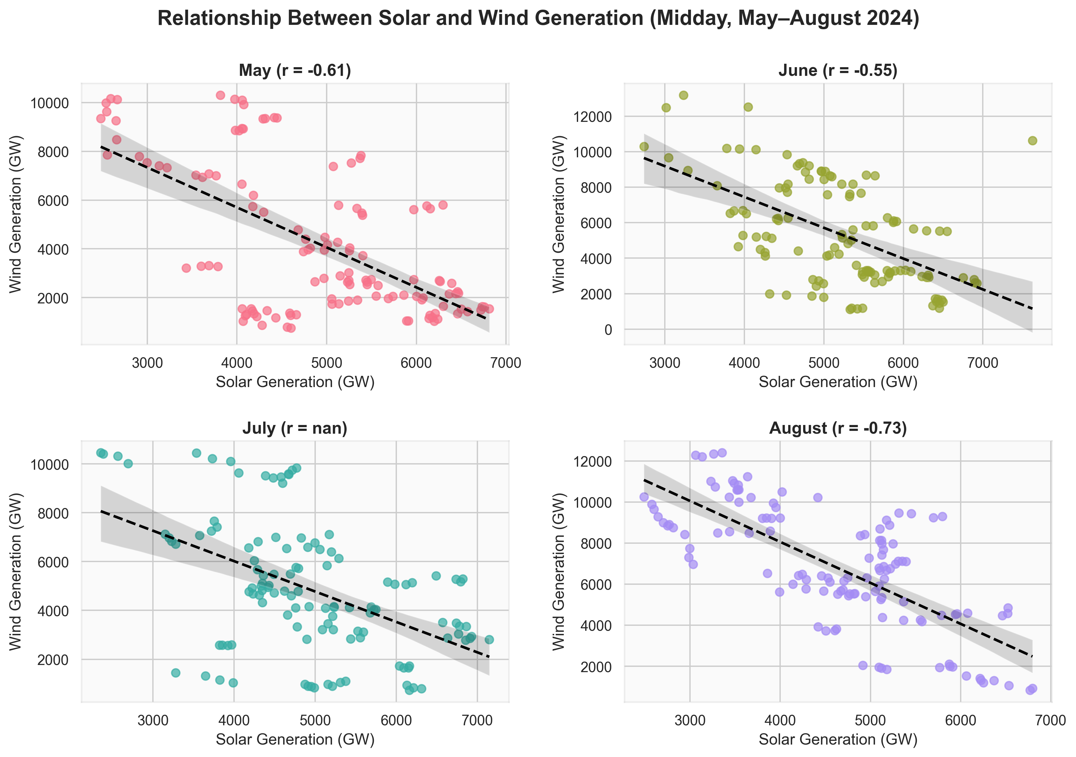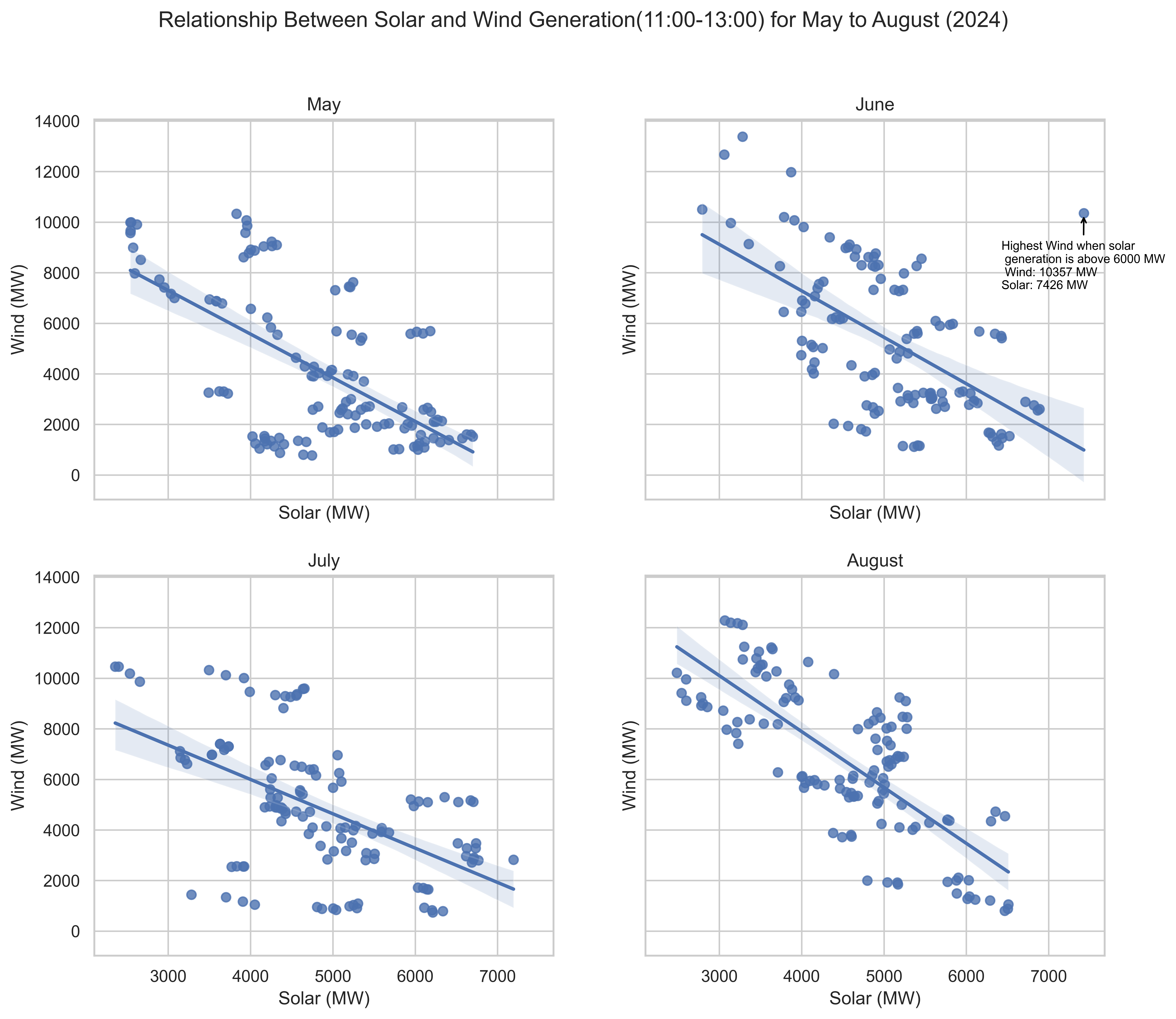 "Distribution of Midday Solar and Wind Generation by Month"