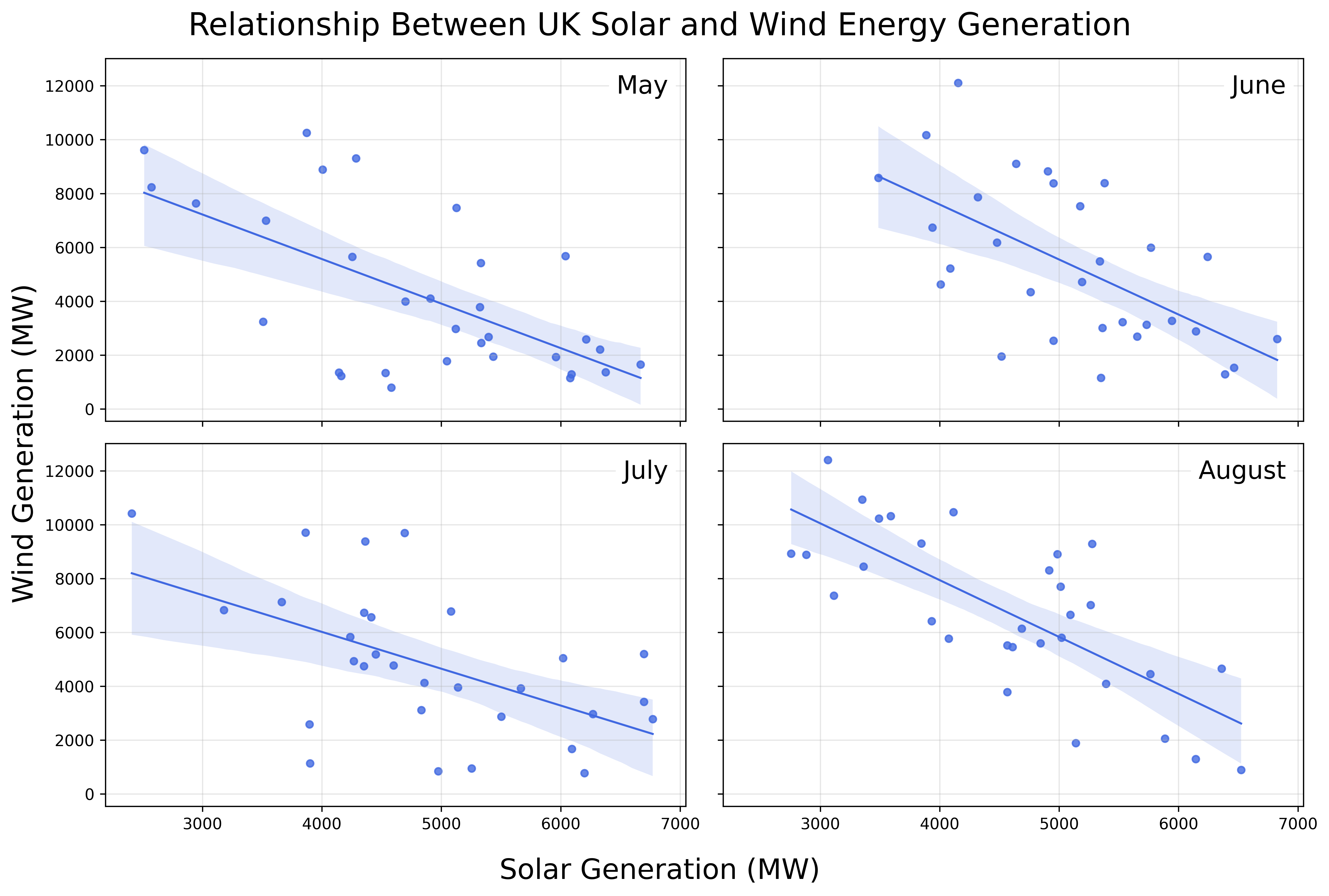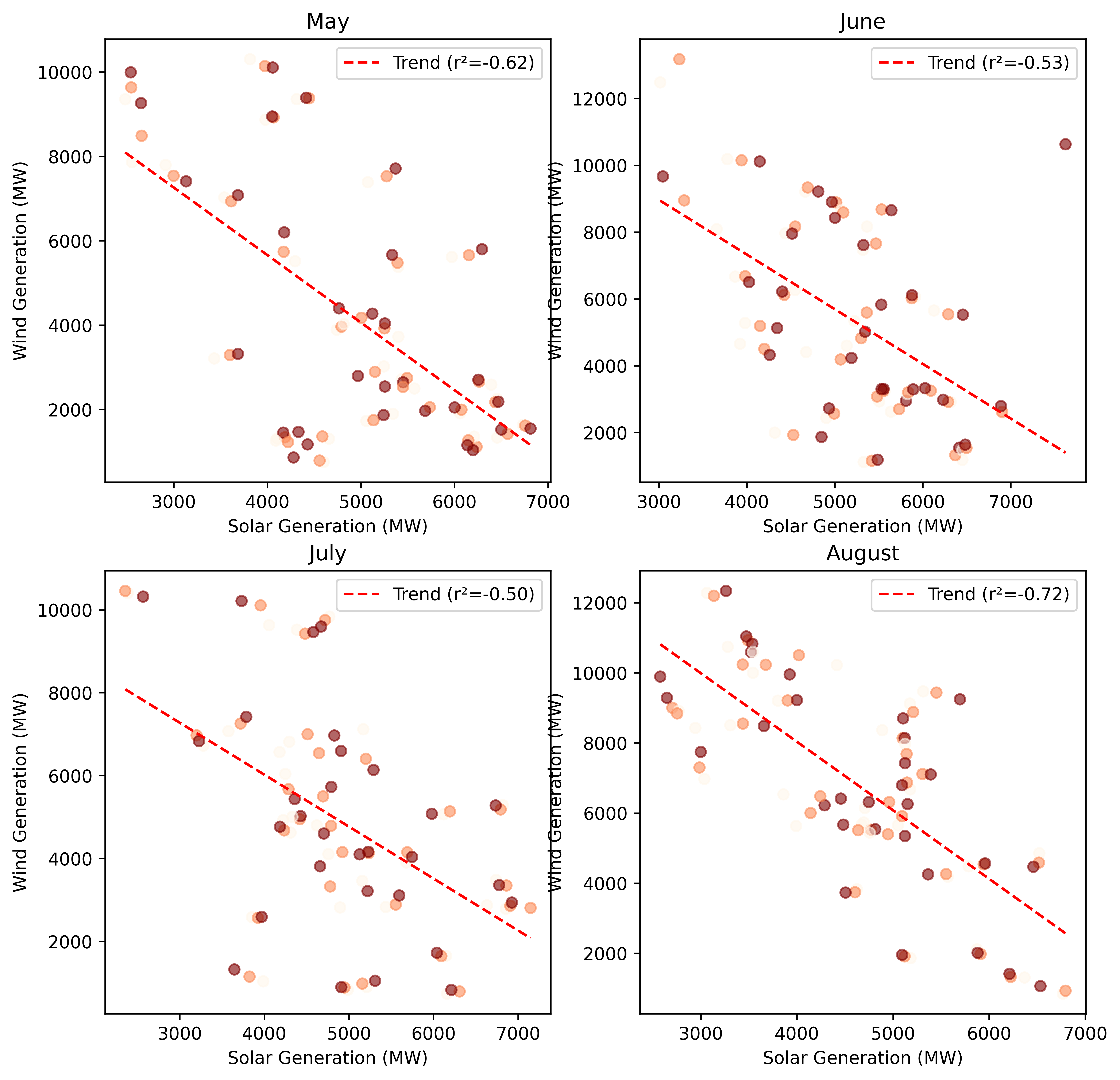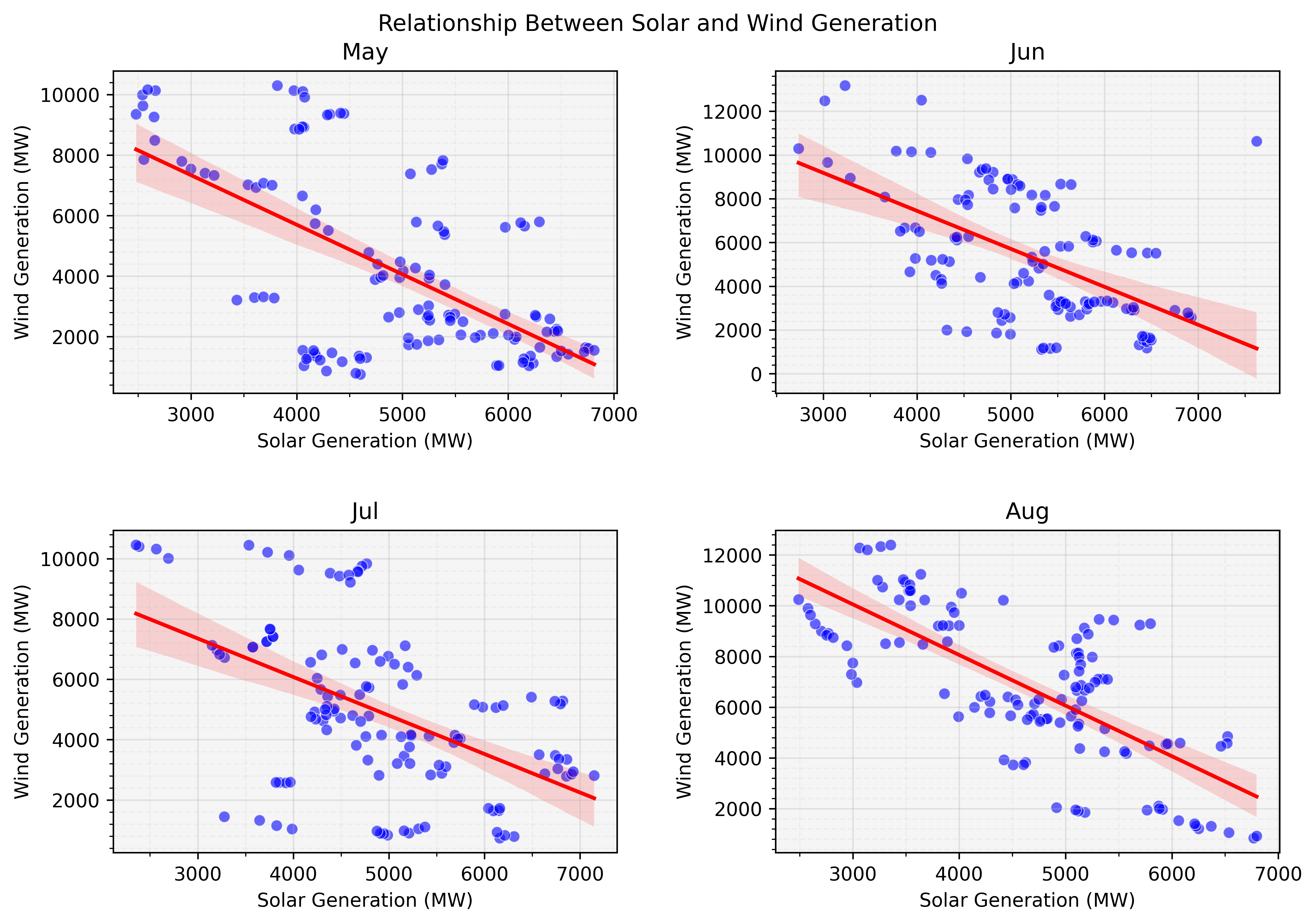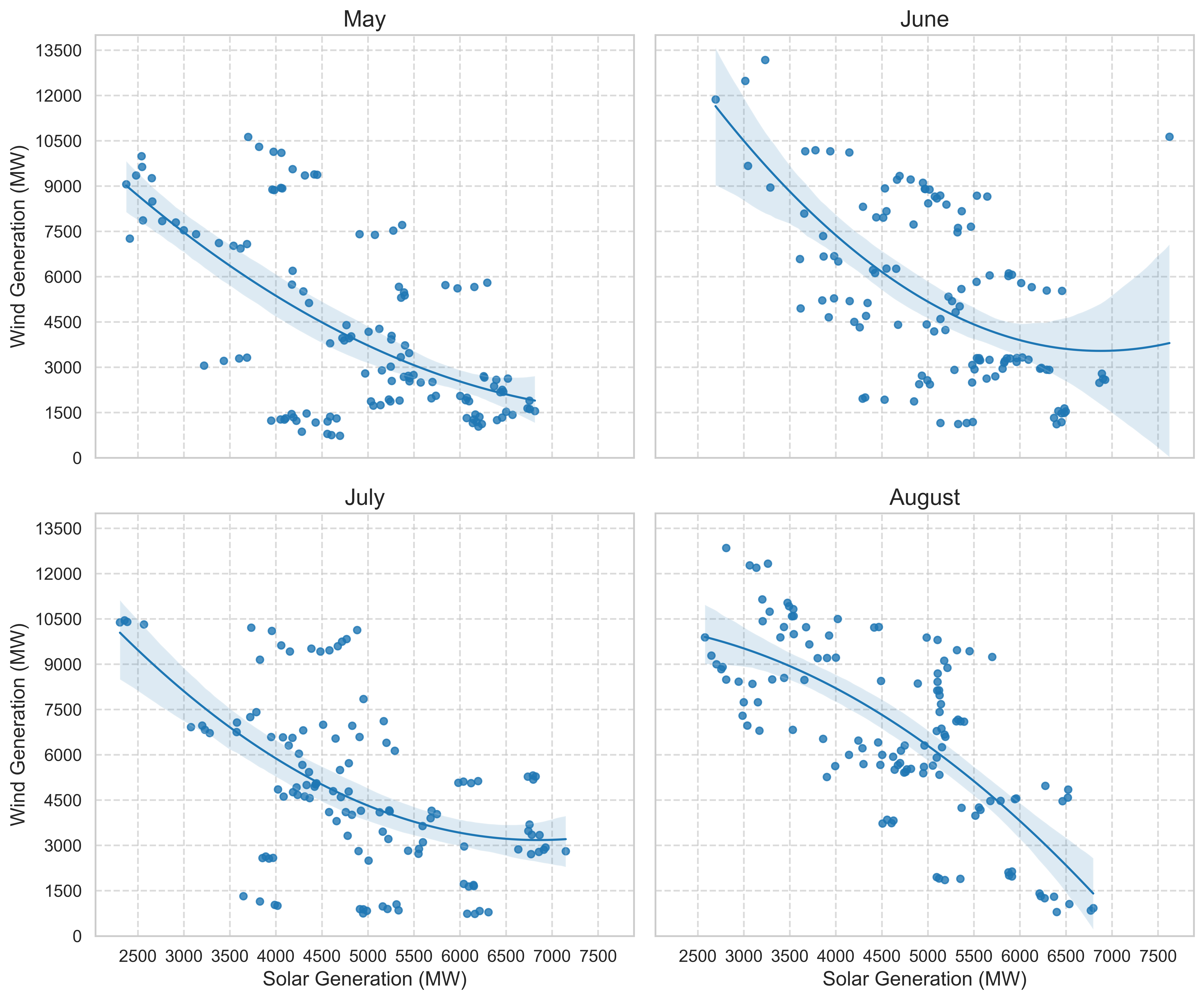 "Distribution of Midday Solar and Wind Generation by Month"